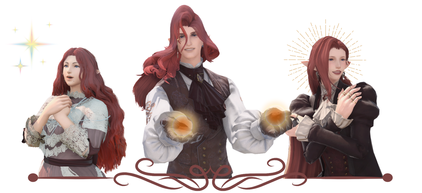 Their parents were pacifists. During the Dragonsong War.They did not want to fight, nor wound, nor do anything but love. In desperation Kenneth and Amitié Barbier dedicated their children to Menphina if she would only give them a way to live a life of love. To their delight and surprise, She listened.Born to lesser nobles, Valentione and her siblings were taught what it meant to fully give one's heart to a cause, whether that was goddess, country or kin. The siblings were all forbidden from participating in anything having to do with the war, and spent much of their childhood in whatever distraction their parents could find.They received tutoring in languages, arts, science and mathematics and was ultimately drawn to textiles and fiber arts. When the opportunity presented itself, their parents abandoned everything they'd built within Ishgard to flee to the sunlit vistas of Limsa Lominsa. Their titles were cut away, their inheritance donated to the reformation, and they left behind the snow and ice that came to plague their home.