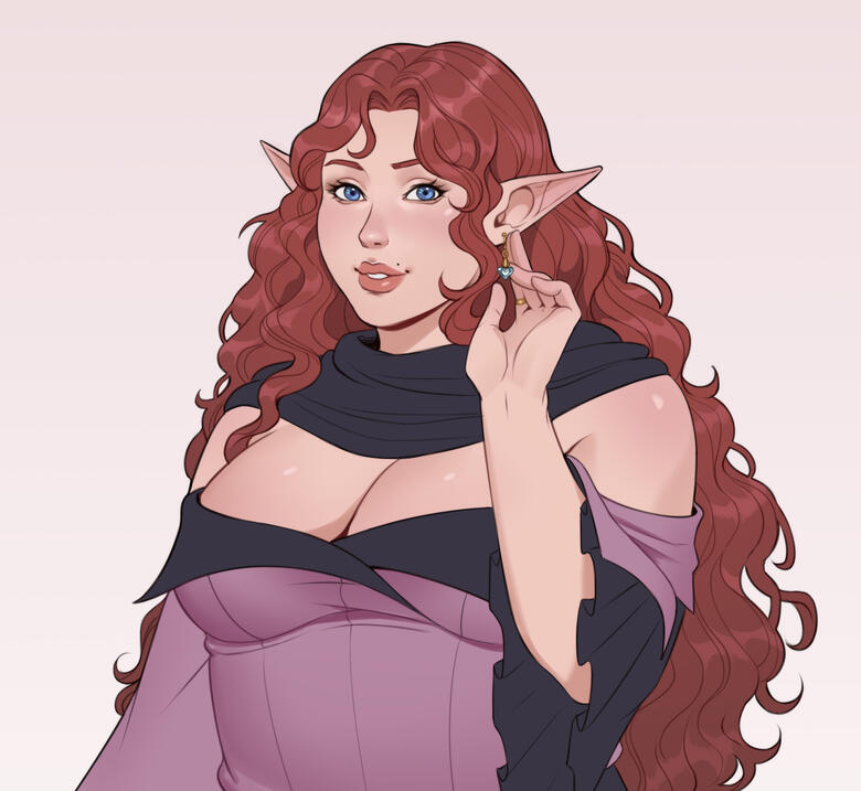 HEIGHT 5’ 2” (157.4cm) HAIR Thick, unruly red curls that fall just below her waist. Len is unable to do much with the curls, and often finds them a hassle. EYES Vibrant, azure blue. PIERCINGS Single piercing in each ear. BUILD Len is a short and soft craftswoman, often spending long hours sewing and designing new gowns. With a sweet, heart-shaped face and equally wide hips and chest, she's meant for quiet hobbies and contemplation.